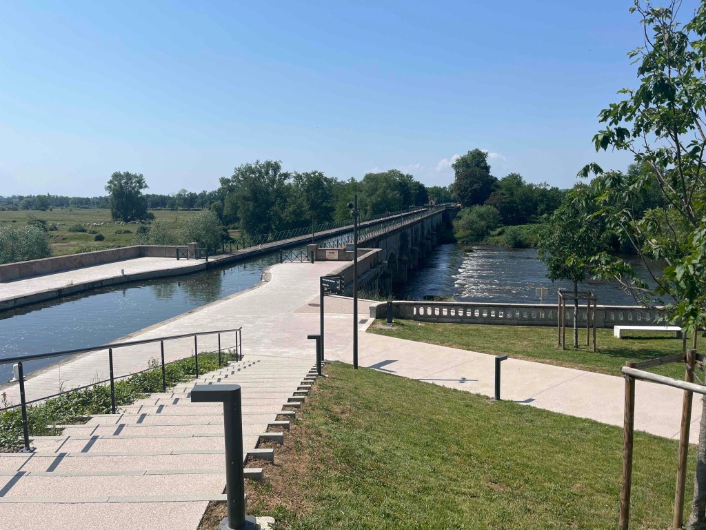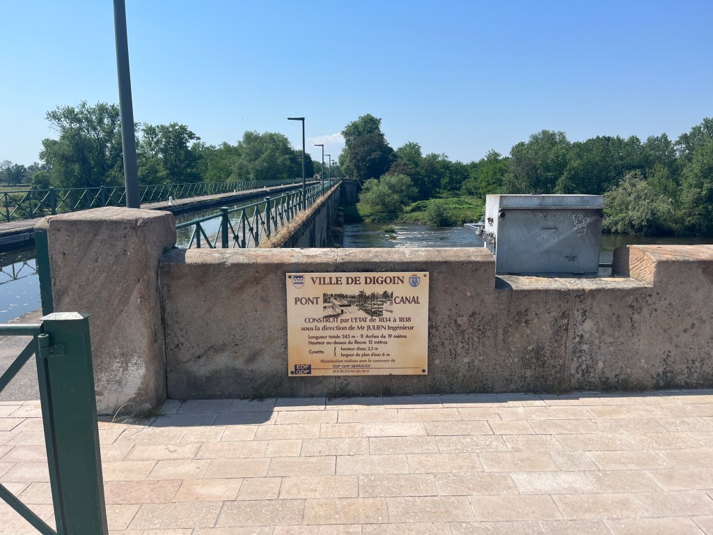 We plan to camp at a site with all facilities at Bourbon-Lancy half way to our rendezvous point tomorrow with our guests at Decize. We meet for a planned lunch at Digoin, it is a milestone as it is where we meet with the Loire. It is a spectacular point as the canal is taken by aqueduct over the river there. The river is beautiful and there is a very well put together and maintained visitor centre there. Obviously it is closed as are the cafes that are supposed to serve the spot! Again, France is closed.