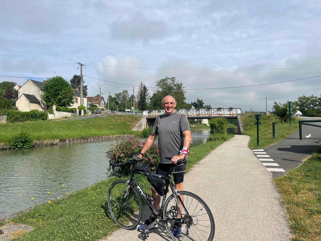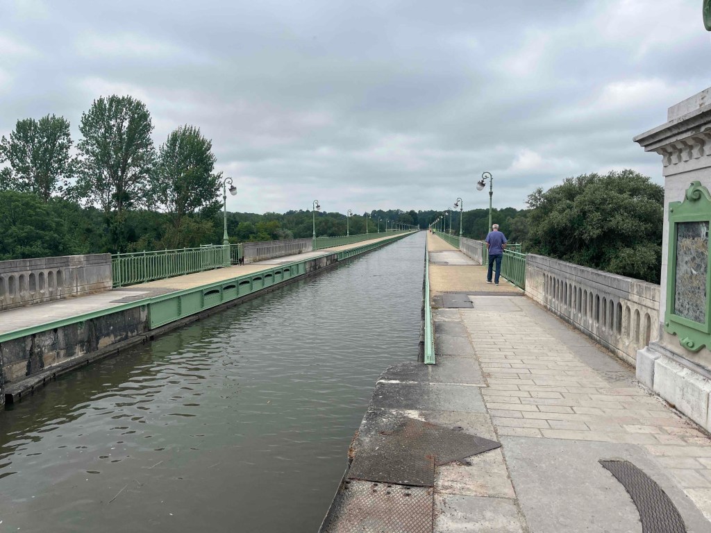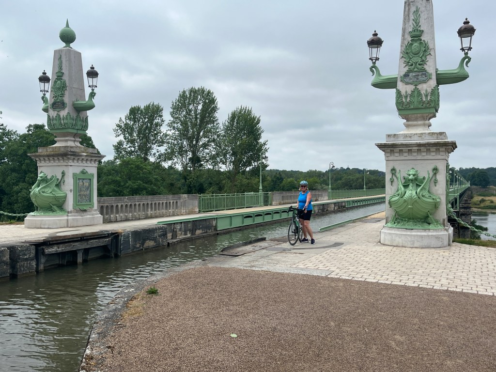 We are off to Orleans today. Krc joins me on the first leg. 4 lots of 30 kms. First leg is ok. Along the canal, past one of the massive nuclear power stations you find on the river, and into Chatillon to meet the support crew. We start the second leg to Lion en Sulias with Krc still with me. We cross some of the wealthy chateau areas. There is a fantastic and ornate aqueduct over the river- leftover from a very grand age. Problem is the wind direction has changed today and is in our face- it is also getting stronger. A lot of the route is on top of levees. Brilliant when the wind is behind you but not when it’s in your face! It is starting to be a slog against the wind as the breeze picks up.