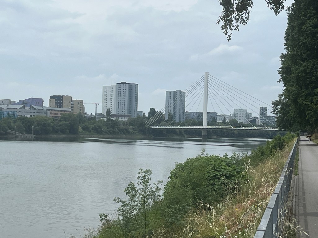First sight of Nantes. It is a big city with an industrial side to it. Like many of the places we went through on the rivers, industry is on the banks too. That means you ride through the Avonmouth of the city! It is a big city but very cycle friendly so it is easy and feels safe to navigate through on a maze of cycle paths on cycle safe routes. And when you get to the other side- you pass through the next Avonmouth.